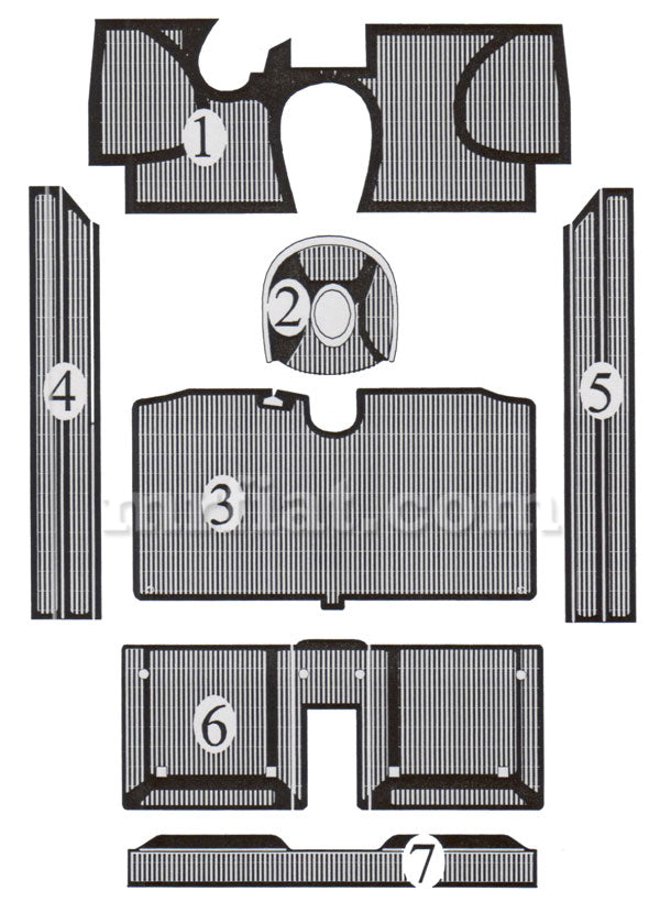 Rubber mat #2 for Lancia Fulvia Sport Zagato 1st Series. There is a 2-3 week production time for this item. Made in Italy. Original Equipment Manufactured Part. Part number: 13275-002