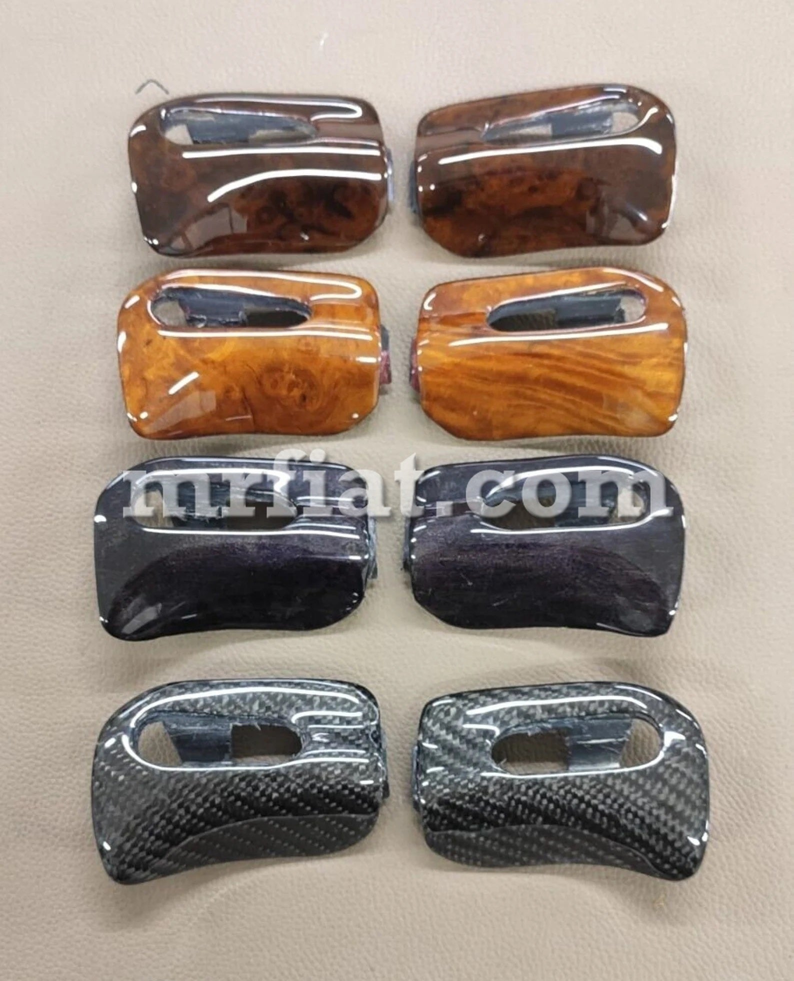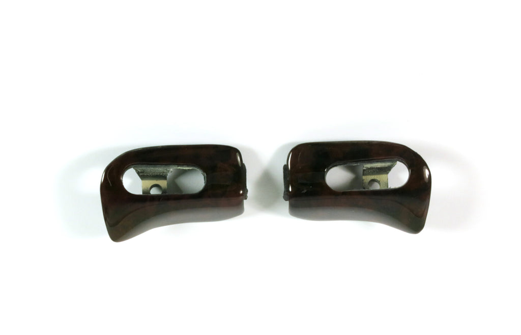 Handmade burled walnut set of sun visor trim caps for Mercedes R129, SL320, SL500, SL600, 300SL, and 500SL models. Please specify the color option.