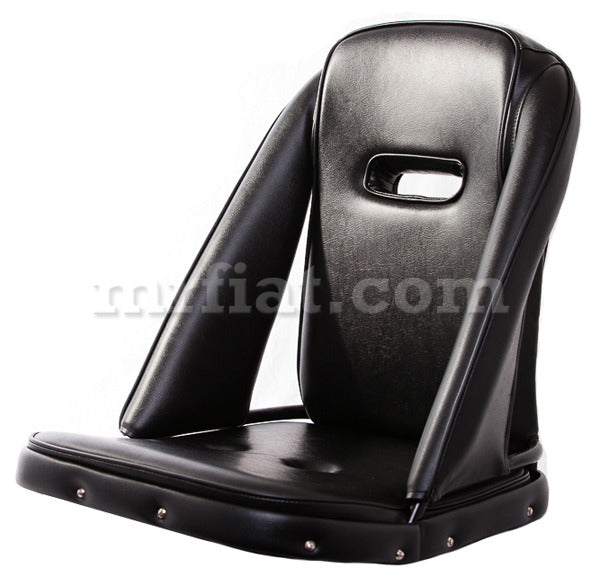 ONE new sport seat with side openings and backseat opening Porsche 356 models. This seat is handmade in Italy. It is made from galvanized duralastic belts and jute fabric. The frame is made out of foam padded iron tubesdensity: 50/40/30 . The seat is covered with leatherette. Please contact us directly if you want to customize the seat before ordering. Dimensions: 63 cm high, 54 cm deep, 51 cm. wide. Weight: 6.2 kg. Only sold in sets of two.