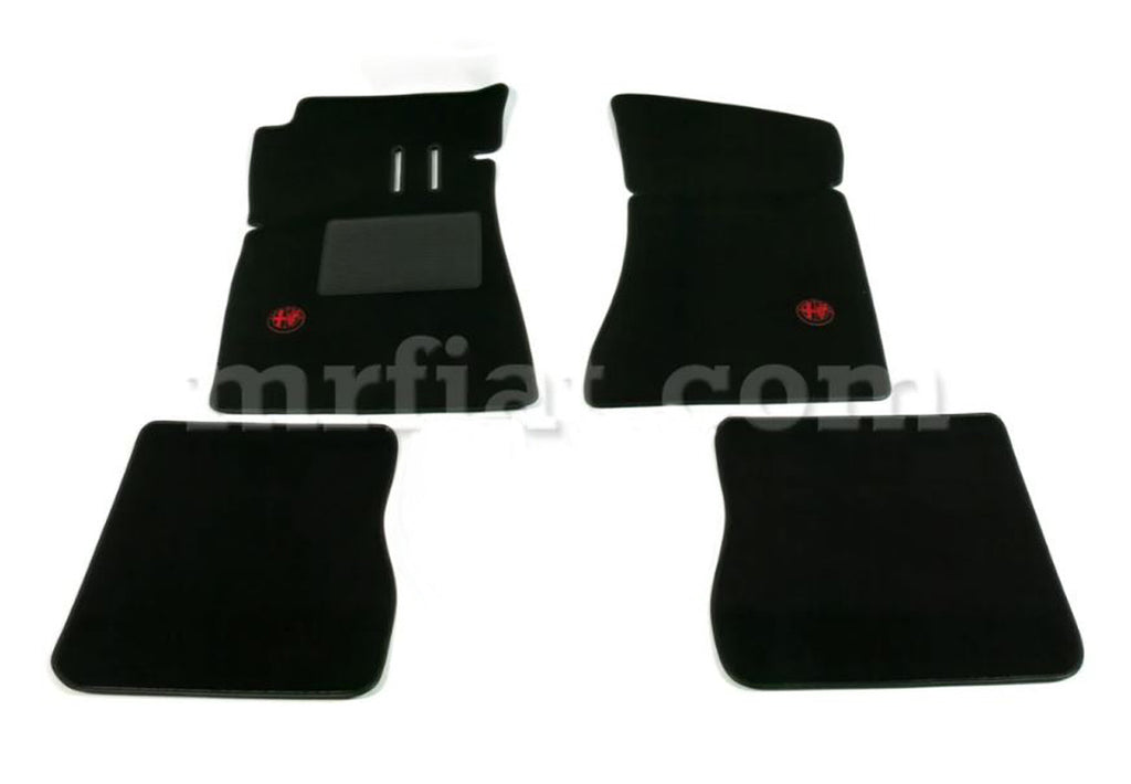 Four piece set of high quality custom made floor mats with Alfa Romeo embroidery for Alfa Romeo Giulia Sedan 1300 and 1600 models with floor pedals. Made in Italy.
