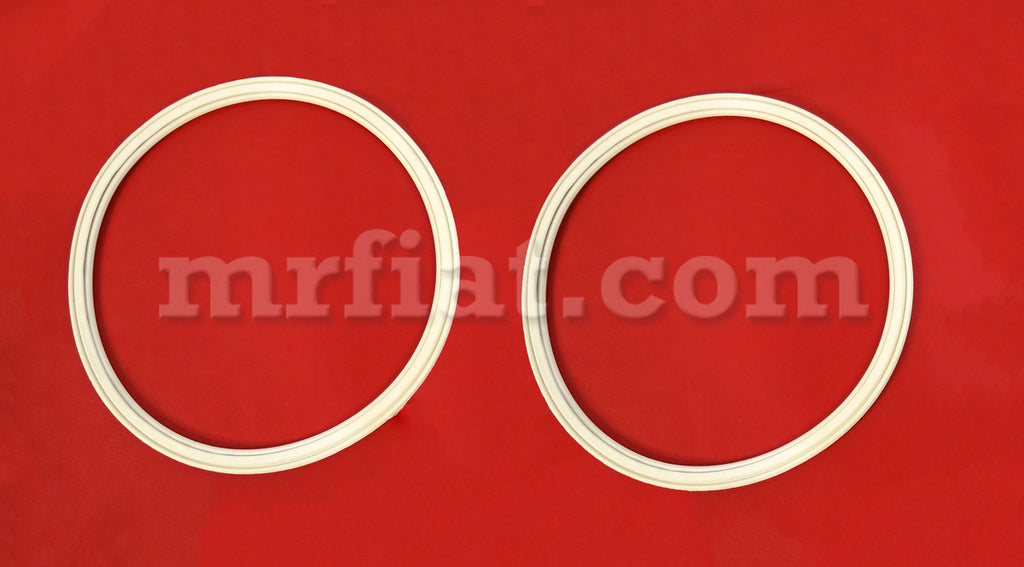 Set of white headlight rubbers for Lamborghini Miura P400 - S SV models from 1966-73. Made in Italy. Original Equipment Manufactured Part. Part number: 14300-253.