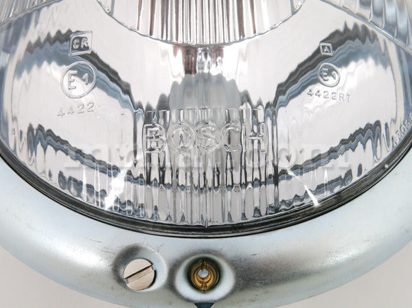 A one complete headlamps with convex glass Bosch The bulb, as well as the chrome trim ring outside is not supplied. For Mercedes W198, 300SL models.