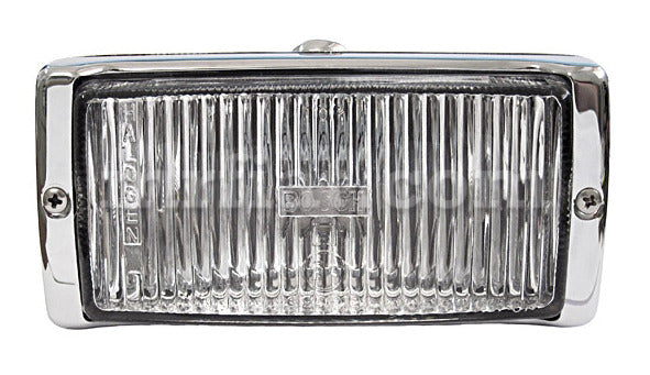 Chrome black fog light Porsche 911, 930, and Carrera models from 1974-83. Left or right side fog light with black bezel. Porsche part # 911.631.206.03.