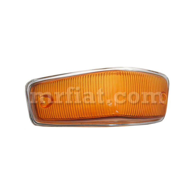 E-type checked right front chrome frame indicator lens for Volvo 140 models from 1966-72.