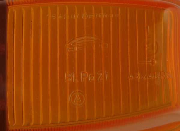 Clear amber front left turn light lens for Volvo Amazon models. This item is made to 100OEM specs with original markings. Made in Germany with 2-3 Week Production time.