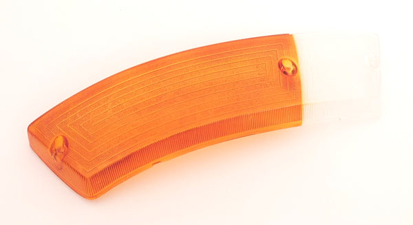 Amber clear front right turn light signal lens for Alfa Romeo Fastback Spider models from 1970-82. This item is made to 100OEM specs with original markings. Made in Germany. This item is in stock.