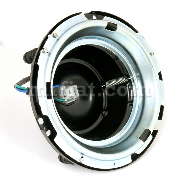 Headlamp housing with open backside and removable cover on the backside with fastening clamp for Alfa Romeo Spider Fastback Models.