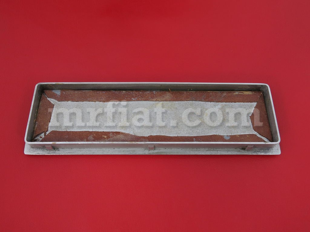 Mirror polished stainless steel radio cover for De Tomaso Pantera and Longchamp models. It is leather backed and can be painted in a different color.