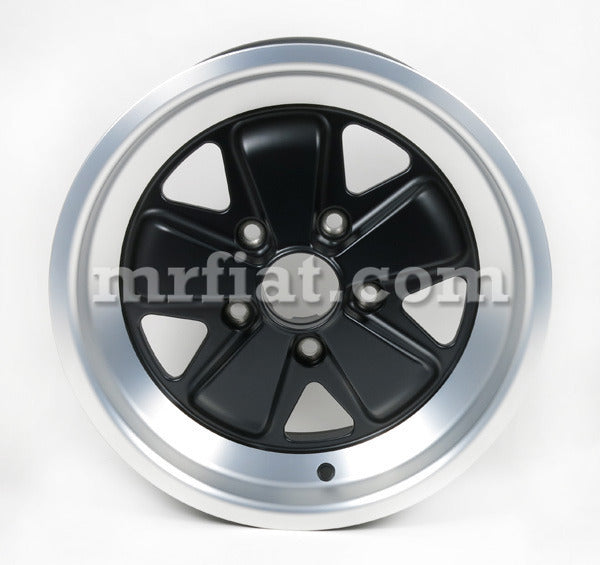 Reproduction matt black polished 7x16 Fuchs wheel Porsche 911, rear wheel 911 SC Carrera, 924 S, 944 and 944 Turbo early offset models until 1985. It might also fit 914/6 models as same bolt pattern as 911 models but please check your body version model: wide or narrow version. Bolt Pattern: 5 x 130 ET 23.3. Weighs 7.4 kg. Made in Germany.