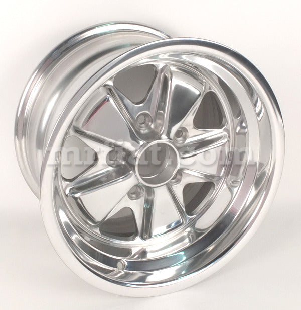 Reproduction full polished 9x15 Fuchs wheel Porsche 914 and 944 early offset models until 1985. It might also fit 914/6 models as same bolt pattern as 911 models but please check your body version model: wide or narrow version. Bolt Pattern: 5 x 130 ET 15. Weighs 7.6 kg. Made in Germany. This rim is at a discounted price.