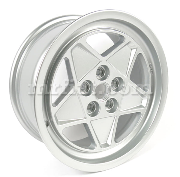 ONE new front 7X16 wheel for Ferrari 208 models from 1989, 328 models from 1985, and 328 without ABS models from 1988. Bolt Pattern: 5X108 mm, Offset:15.15 mm, Center Bore: 67.1 mm, Finish: Silver. Wheels are only sold in a set of 2, you must purchase 2.