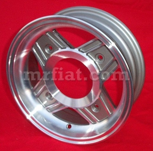 ONE silver aluminium 4.5 x 12 wheel with chromed finish, including tire valve and conical bolts. It fits all Fiat 500 models with a 4 x 190 mm bolt pattern.