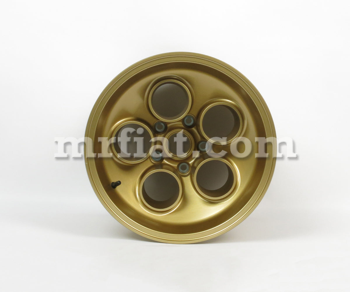 ONE new 12 x 15 forged rear gold Bravo wheel for Lamborghini Countach models. Made in Italy to original specs. Forged One Piece Wheel Material: Aluminum.