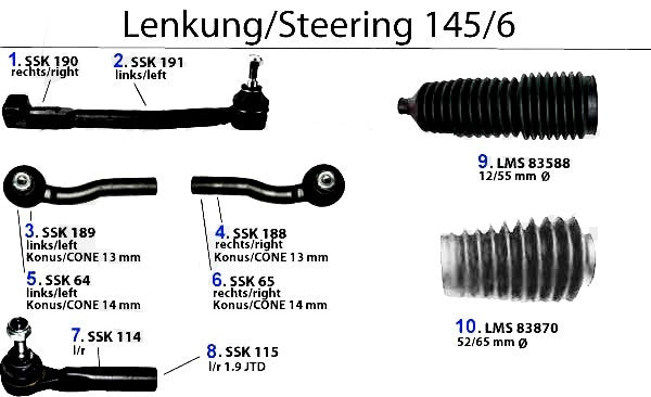 Track rod end rh for Alfa Romeo 145/6 models. #4 in corresponding diagram.