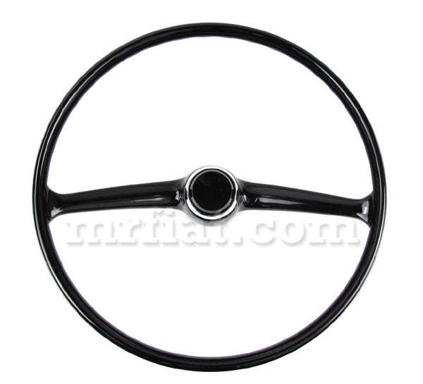 Steering wheel and horn button for all Fiat 500 models. Excellent reproduction from Italy. Diameter: 15 inches.