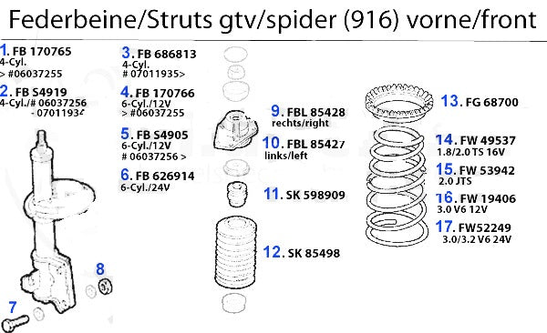 Front shock absorber for Alfa Romeo GTV/Spider (916) models. #4 in corresponding diagram.