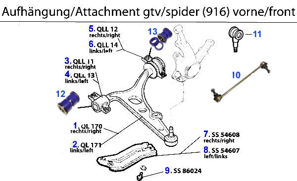 Trailing arm bearing inner right for Alfa Romeo GTV/Spider (916) models. #3 in corresponding diagram.