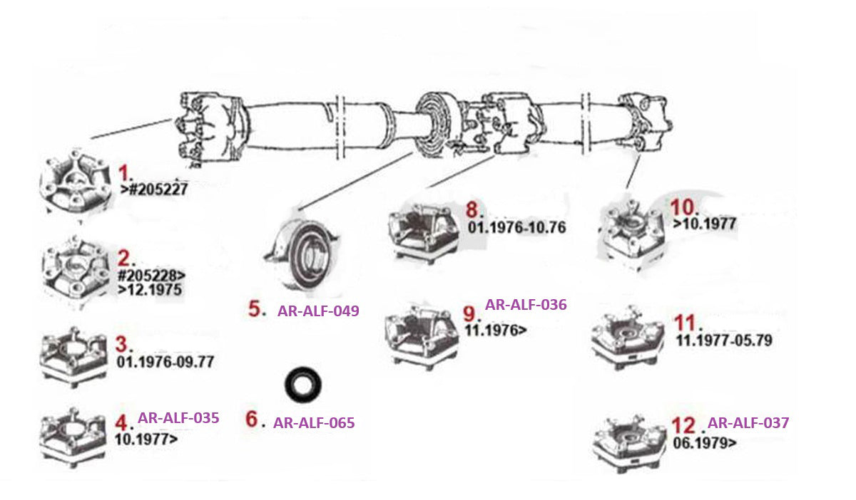 4 cyl. middle driveshaft flex disc for Alfa Romeo 75 Milano and 90 models with a 2.4 TD engine.