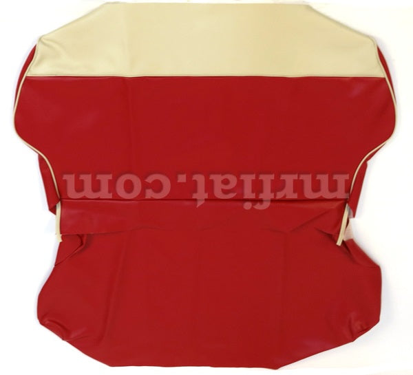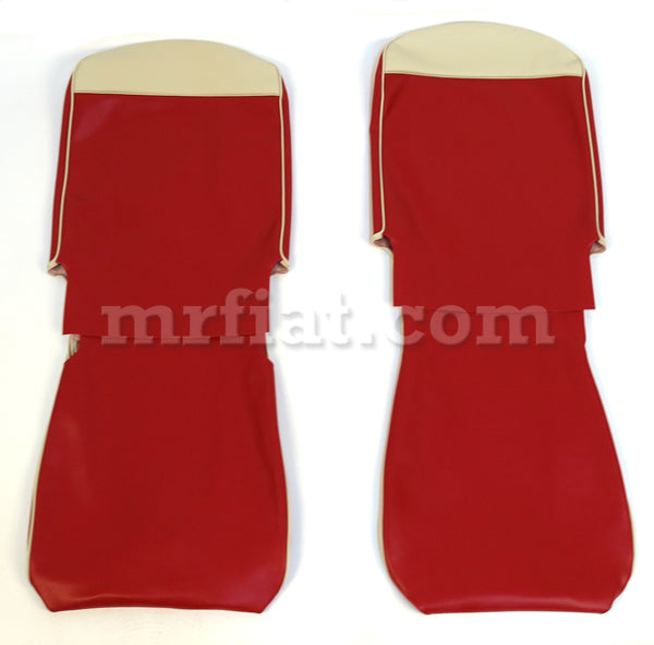 Set of dark red seat covers with cream top for Fiat 500 F and R models. This matches our Fiat 500 F and R red door panels part # UPH-500-012 and UPH-500-009 .