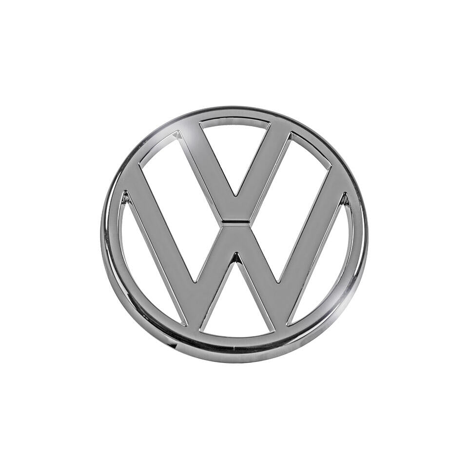 Emblem VW front chrome - 95mm Original VW logos for the front and rear of your beloved T25/T3/Vanagon VW bus. Of course, all these VW logos are sold under the VW license program, so they are all been legal with regard to trademark and suchlike.