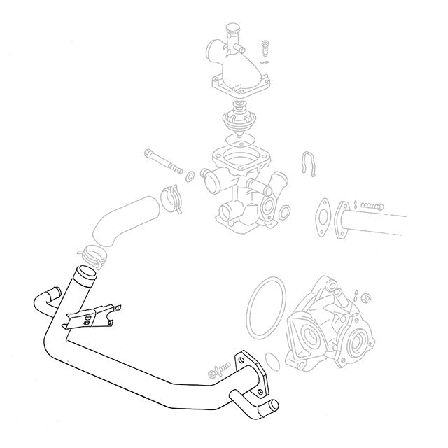 Water pipe between waterpump and thermostat housing, Stainless Steel These metallic pipes can be found with water cooled boxer engines that are used with Type 25 buses. Due to continuous contact with cooling liquid and coolant, these metallic flanges and pipes are very subject to corrosion. It’s no surprise that they need to be replaced after more than 20 years loyal service. MrFiat can deliver them made in stainless steel new per piece from stock.