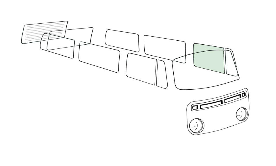 Doorwindow, left, green for Bus T2A, Bus T2B models.