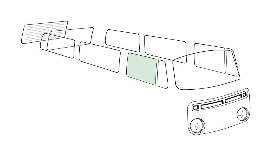 Doorwindow right, green for Bus T2A, Bus T2B models.