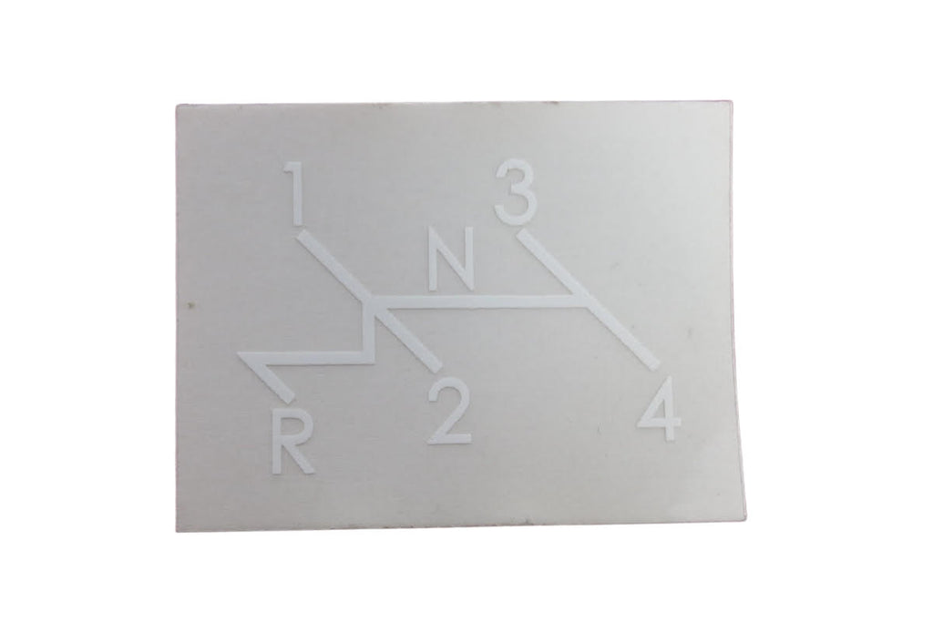 Sticker shift pattern clear with white print for Beetle, Bus T1, Bus T2A, Bus T2B, Karmann Ghia 14, Type 3, Type 4 models.