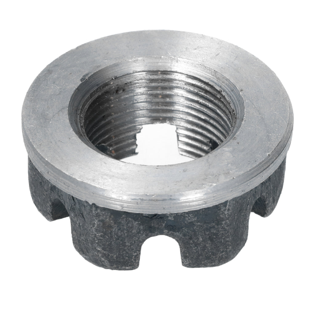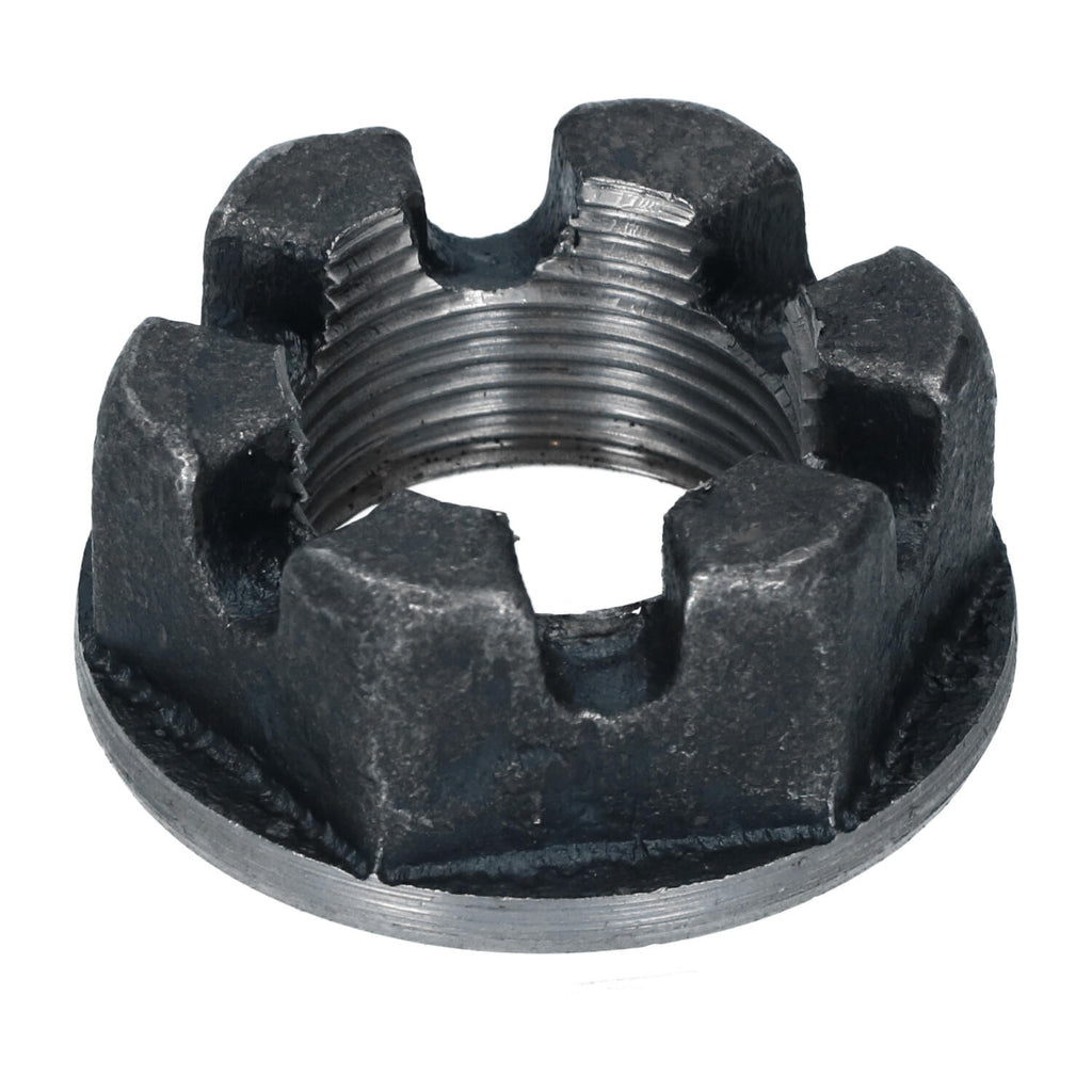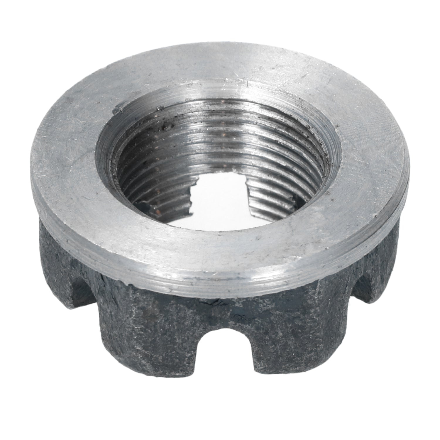 Castle nut rear axle This nut secures the brake drum to the rear axle with a torque of 36kg/m or 136Nm.There are many of these nuts on the market, but a large proportion of them are not made of the correct material and workmanship. So there is a big chance that they can break and your brake drum and thus wheel can come loose. Our nuts are made like VW used to make them and are first stamped forged and then hardened and are therefore very strong.Don't take any risks and use the right nuts.
