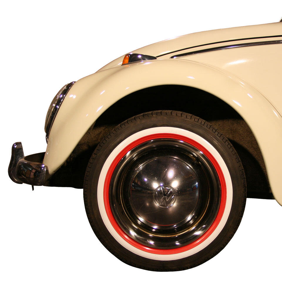 White/red wall ring small 14 inch, 4 pieces for Beetle, Bus Brasil, Bus T1, Bus T25, Bus T25 Watercooled, Bus T2A, Bus T2B, Karmann Ghia 14, Porsche, Type 181, Type 3, Type 4 models.