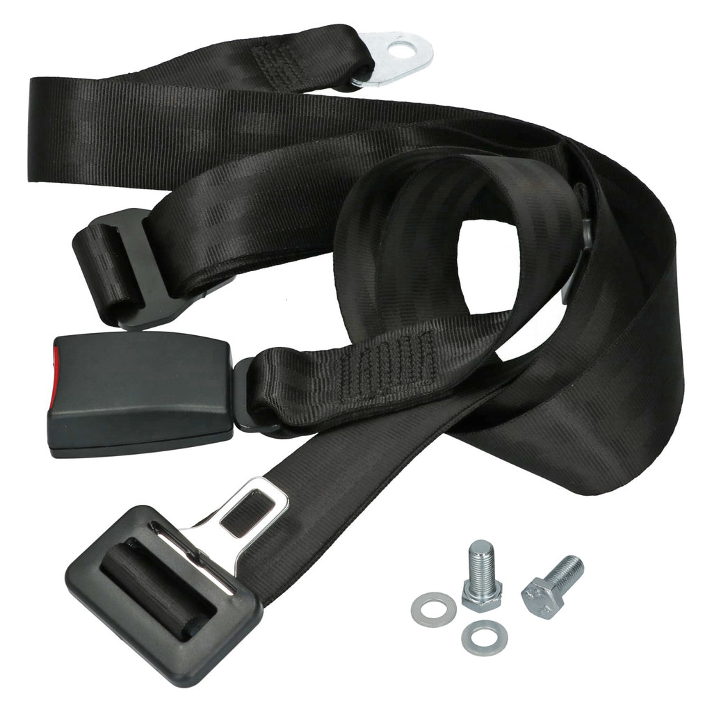 Lap belt black universal extra long with E-mark 1 These are meant to be used on middle benches of the VW bus. They have extra length so you can go back to the floor for easy mounting. Both sides come with adjustable lengths, so you can always place the buckle in the middle, where it has to close.