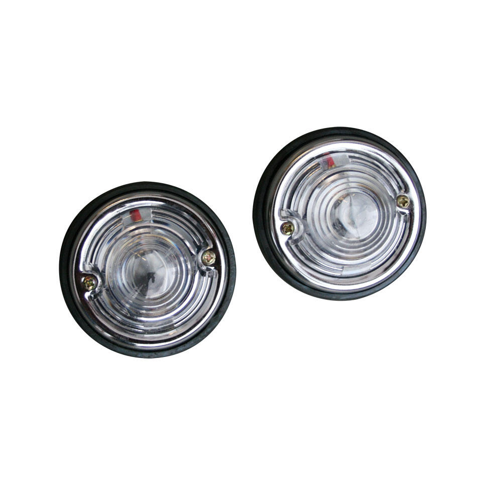 Round lights, white for Beetle, Bus Brasil, Bus T1, Bus T25, Bus T25 Watercooled, Bus T2A, Bus T2B, Karmann Ghia 14, Porsche, Type 181, Type 3, Type 4 models.
