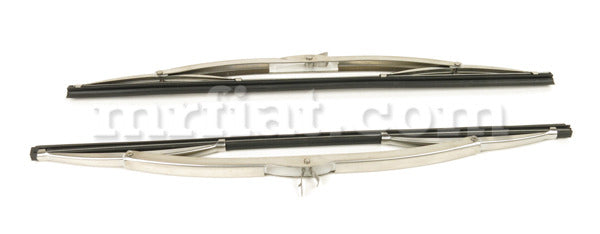 New stainless steel 13 wiper blade set with hook end for Alfa Romeo Duetto Round Tail and Spider 105/115 Chassis models from 1966-93. Fits cars with 180 hook ends.Very nice Italian reproduction blades.
