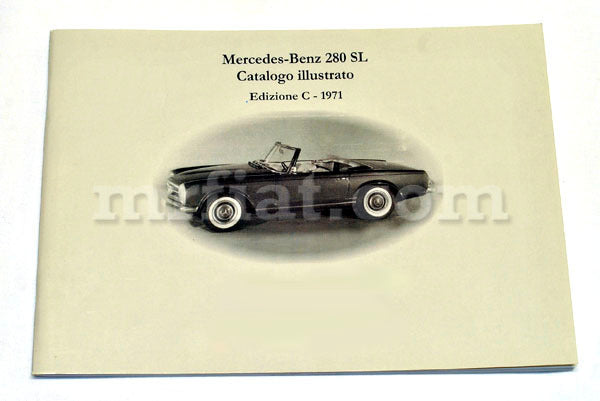1971 edition ge/en/it/fr illustrated parts catalogue for Mercedes 280 SL models. Made in Italy.