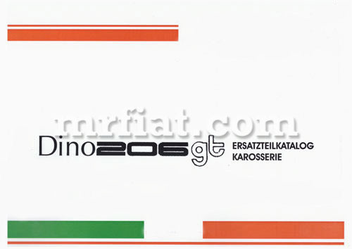 Body spare parts catalog for Ferrari 206 GT models. This is a spiral bound 60 page catalog in Italian.