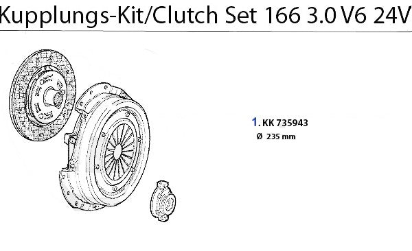 Clutch kit for Alfa Romeo 166 3.0cc V6 24v models. #1 in corresponding diagram.