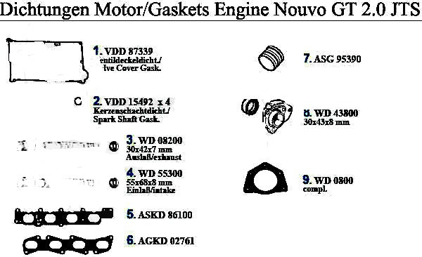 Intake manifold gasket for Alfa Romeo Nuovo GT 2.0cc JTS models. #5 in corresponding diagram.