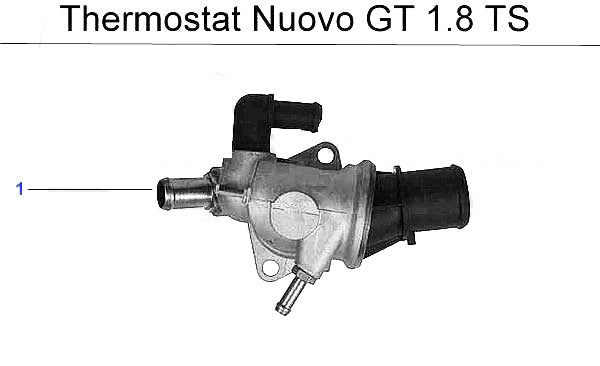 Thermostat with housing for Alfa Romeo Nuovo GT 1.6cc/1.8cc/2.0cc IE TS models. #1 in corresponding diagram.
