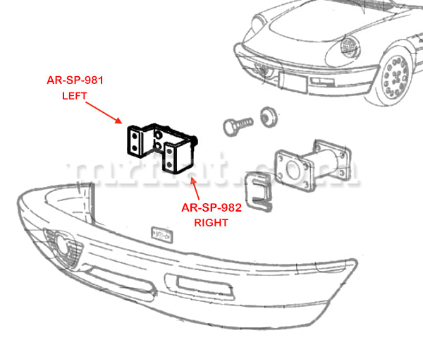 Front bumper right mounting bracket for Alfa Romeo Spider models from 1983-93.