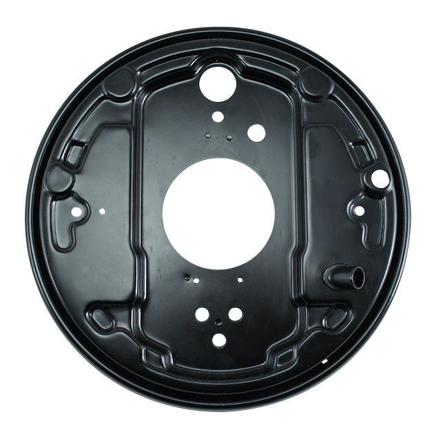 Backing plate, rear left Backing plates are essential for a proper assembly and protection of various brake parts on the rear axle. That s why they should always be in an impeccable state. As they are located at the inside of the wheels, these plates can get severely damaged due to influences of water, sand, dirt and stone-dust. From now on MrFiat can deliver a good reproduction a piece for each side from stock.