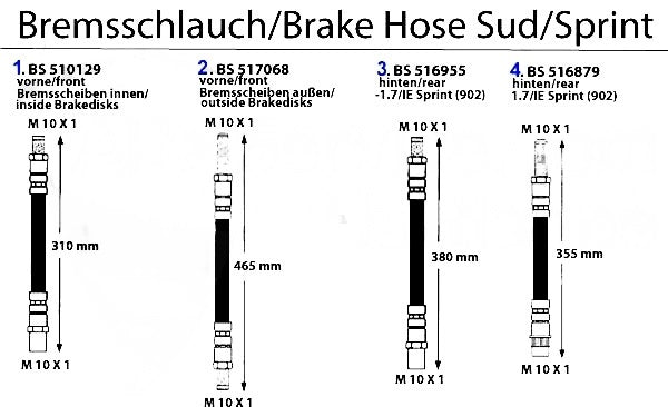 Brake hose rear with drum brake for Alfa Romeo SUD/SPRINT models. #4 in corresponding diagram.
