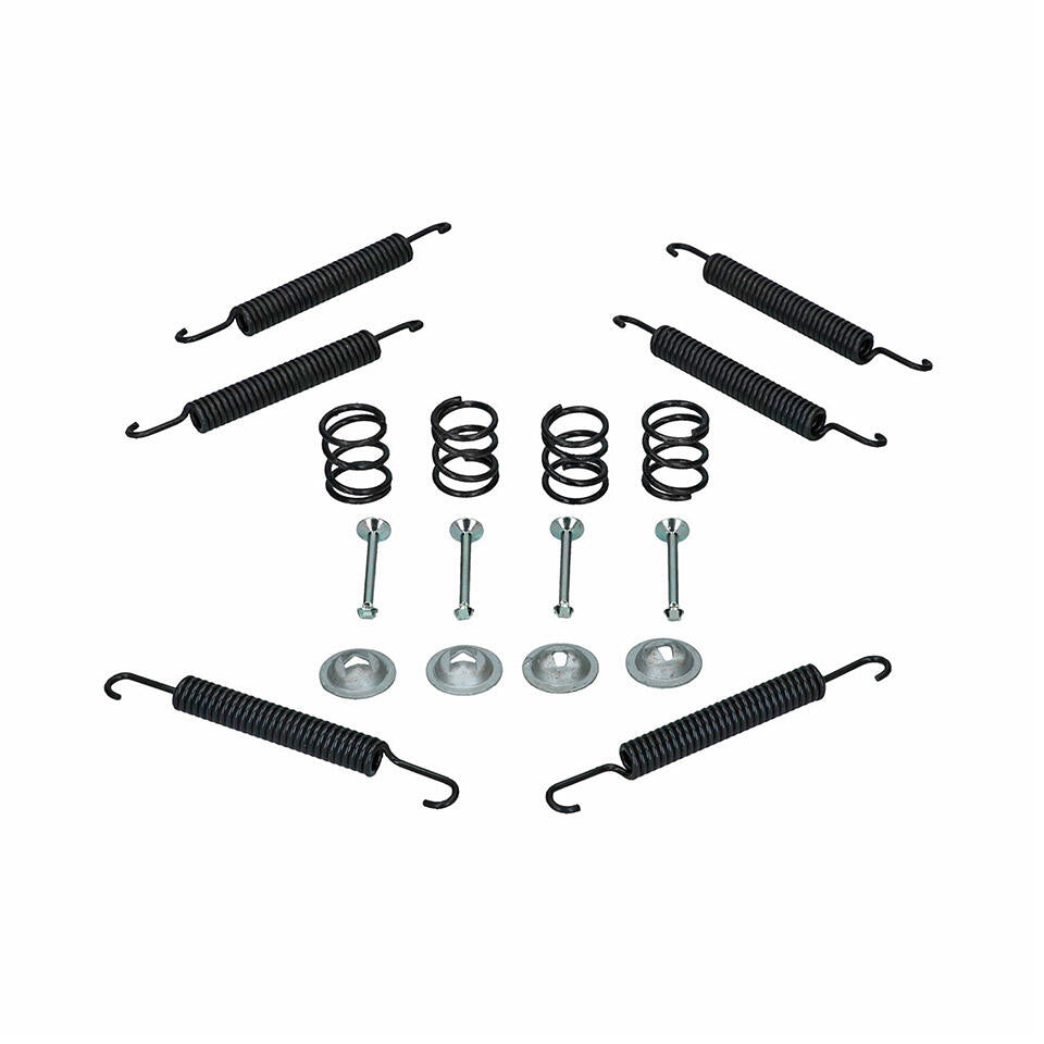Brake shoes mounting kit, front / rear This brake mounting kit bring you all the hardware to replace all rusty and worn springs and clips to mount the brake shoes like it should. This kit fits all beetles and Ghia s up to October 1957 in the front and all oval era beetles and Karmann Ghias from October 1953 up to October 1957 in the rear. One kit contains all your need for one axle 2 wheels .