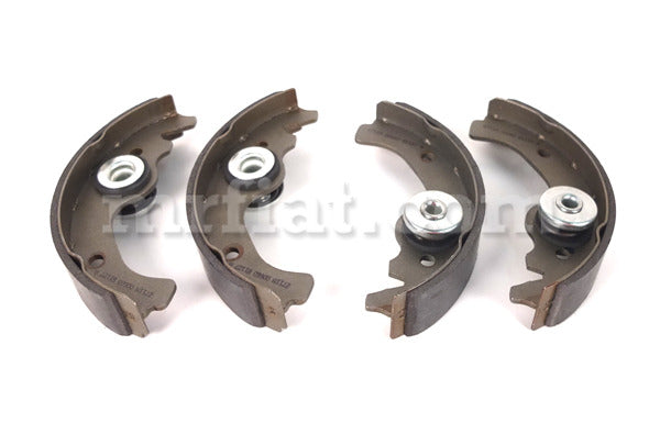 Set of brake shoes for the Fiat 500 F/L/R models. This set of brake shoes is for one axle.