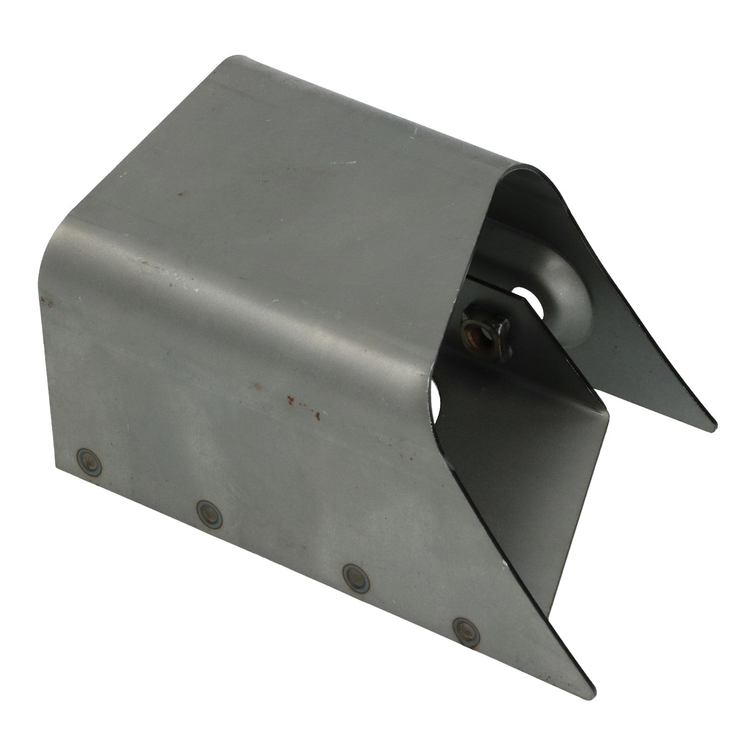 Bumperbracketscover front left These little metal box-shaped covers sitting right between your body and your bumper covering and bolted to the bumper bracket. Always rusty, bent, messed up or simply missing, this is a real good item if you re restoring a Karmann Ghia up to 1971.These covers are always painted in the lower body color of the car.There are two different models for the front, one for Euro model bumpers and one for export type of bumpers with the towel rails. As for the rear there s only one model.These bumper bracket covers have been mounted with a rubber between the body. This rubber is already available under MrFiat ref 0085-190 sold a pair, one piece per cover