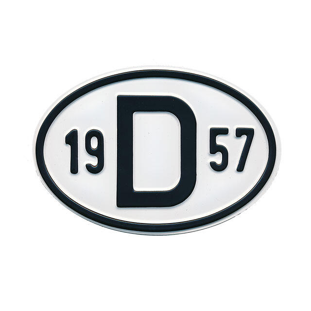 Sign D 1957 for Beetle, Bus T1, Karmann Ghia 14, Porsche models.