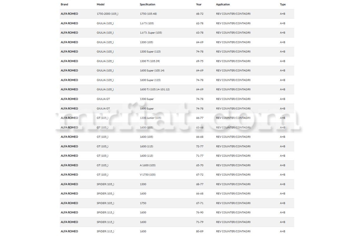 Speedometer cable for Alfa Romeo Giulia GT and Spider from 1962-90 model 1300 1600 and 1750 versions of 105 and 115 series with mechanical rev counter. Length: 1410 mm OEM: 105006450128.