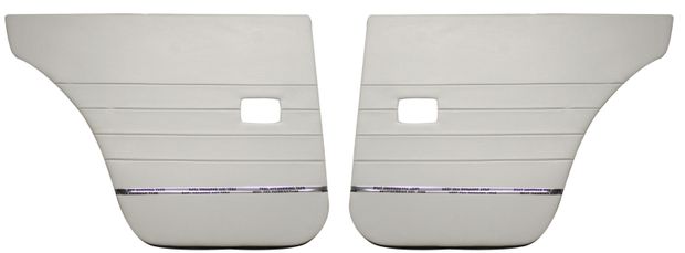 Left and right-hand side set of grey rear door panels for Volvo Amazon P120 and P122 Wagon models from 1962-63. These were mounted originally on cars with upholstery code 147, 149, 151, and 202. Please provide your chassis number and interior code when placing your order, these ensure a proper fit. Items are custom-made and are nonrefundable. Products are artisanally made in Sweden.