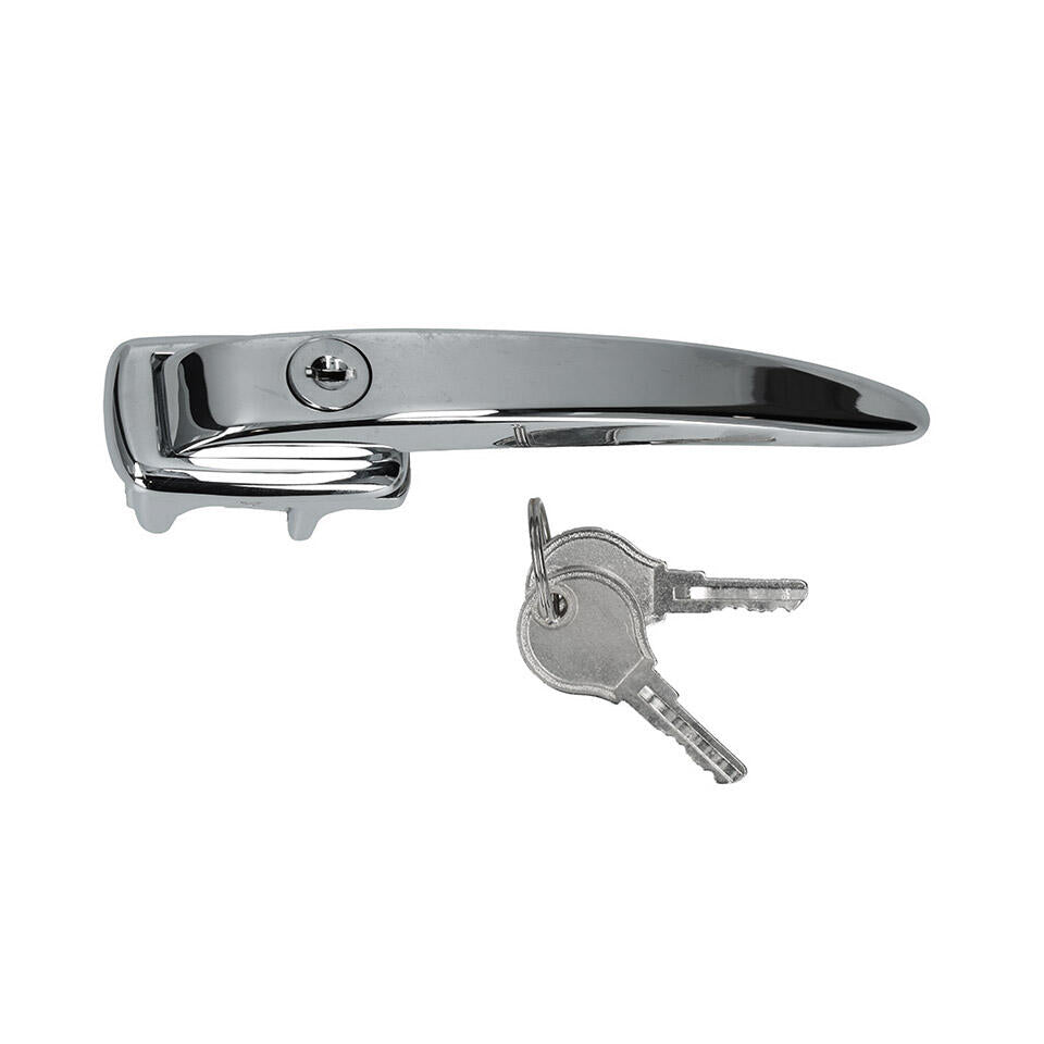 Door Handle with keys TQ Our new door handles for your beloved bus are top-notch They feel and look like original. Extreme high quality and actually as original.They even come with the correct key Door handles up to 1961 are for the doors without recess for the door handle. They feature a high base with a long hook to touch the lock. They re used for beetles up to 1955 and buses up to 1961.The door handles from 61-63 are for the doors with stamped recess for your door handles. They feature a flat base and short hook, easy to recognize