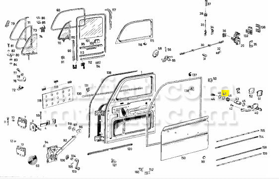 Door push button cylinder lock set late style for Mercedes 180 190 Ponton models. Made in Italy.
