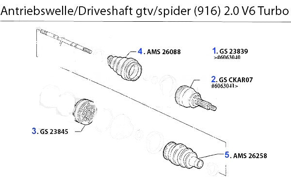 Joint set outside for Alfa Romeo GTV/Spider (916) models. #1 in corresponding diagram.